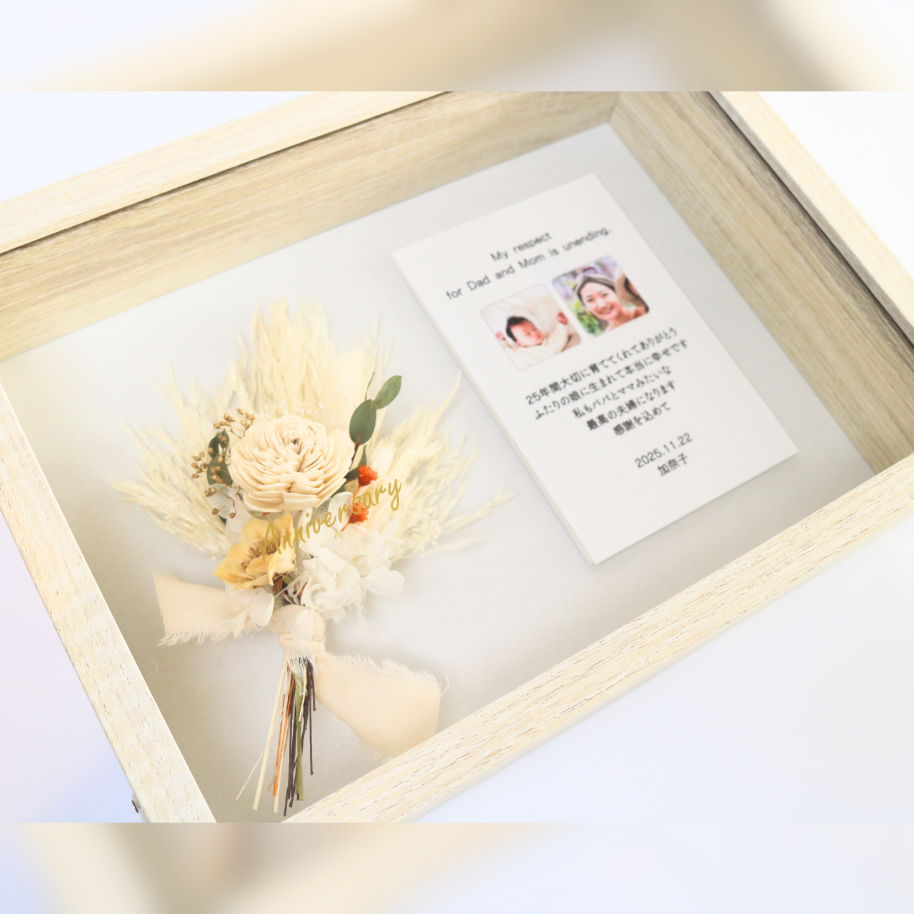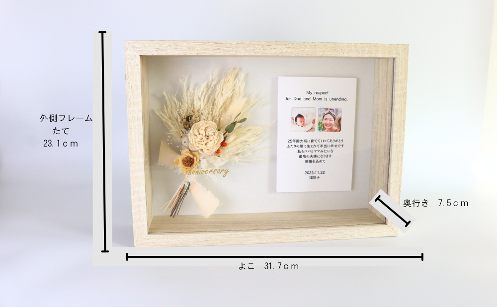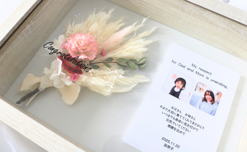 • 左側のフレームに写真付きのメッセージカードを