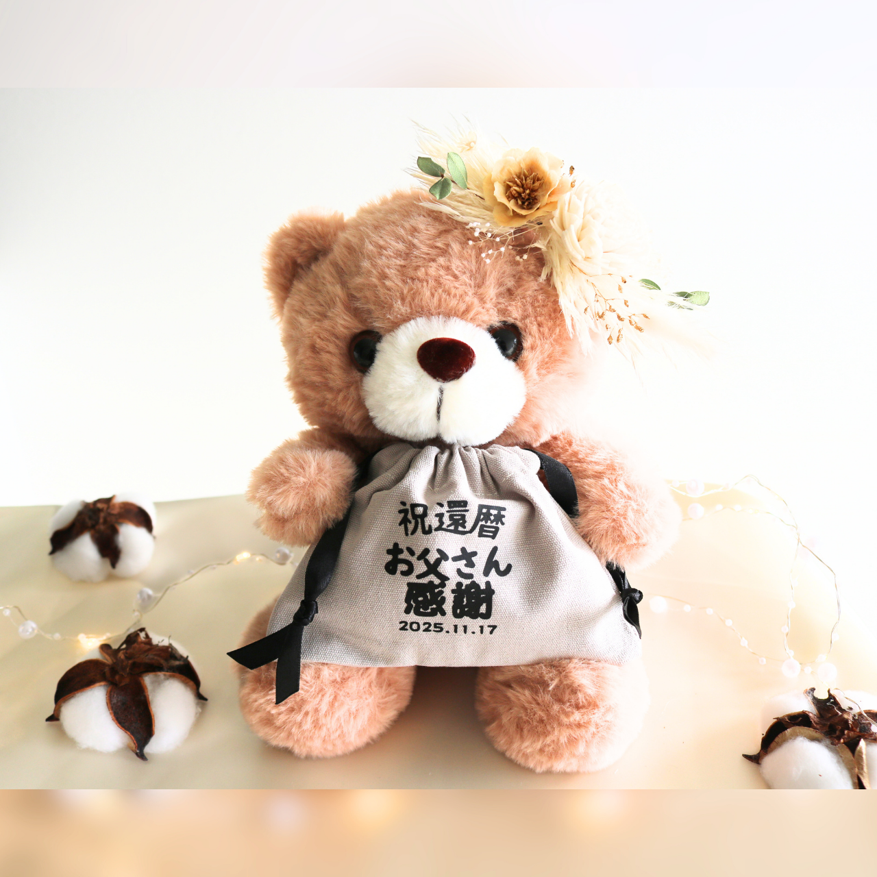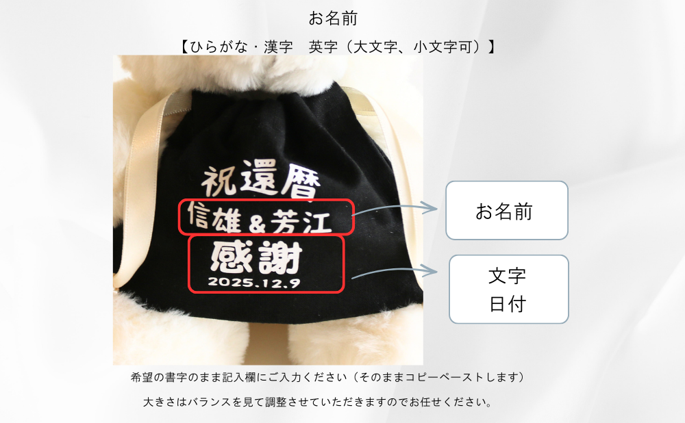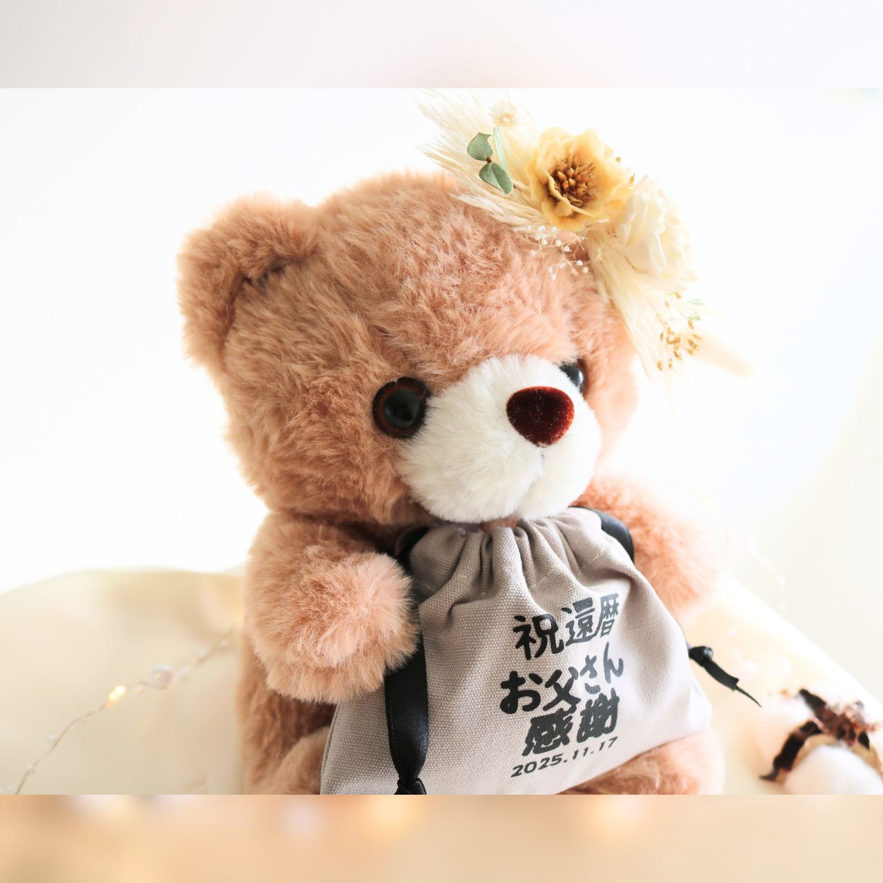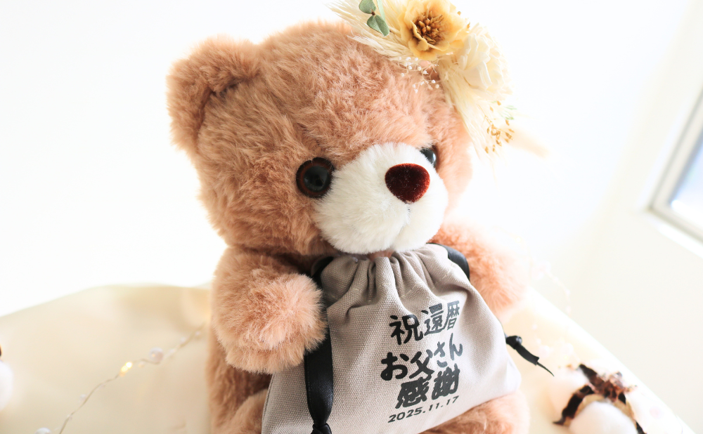 【還暦・長寿お祝い名入れ巾着付きベアー】ベージュ